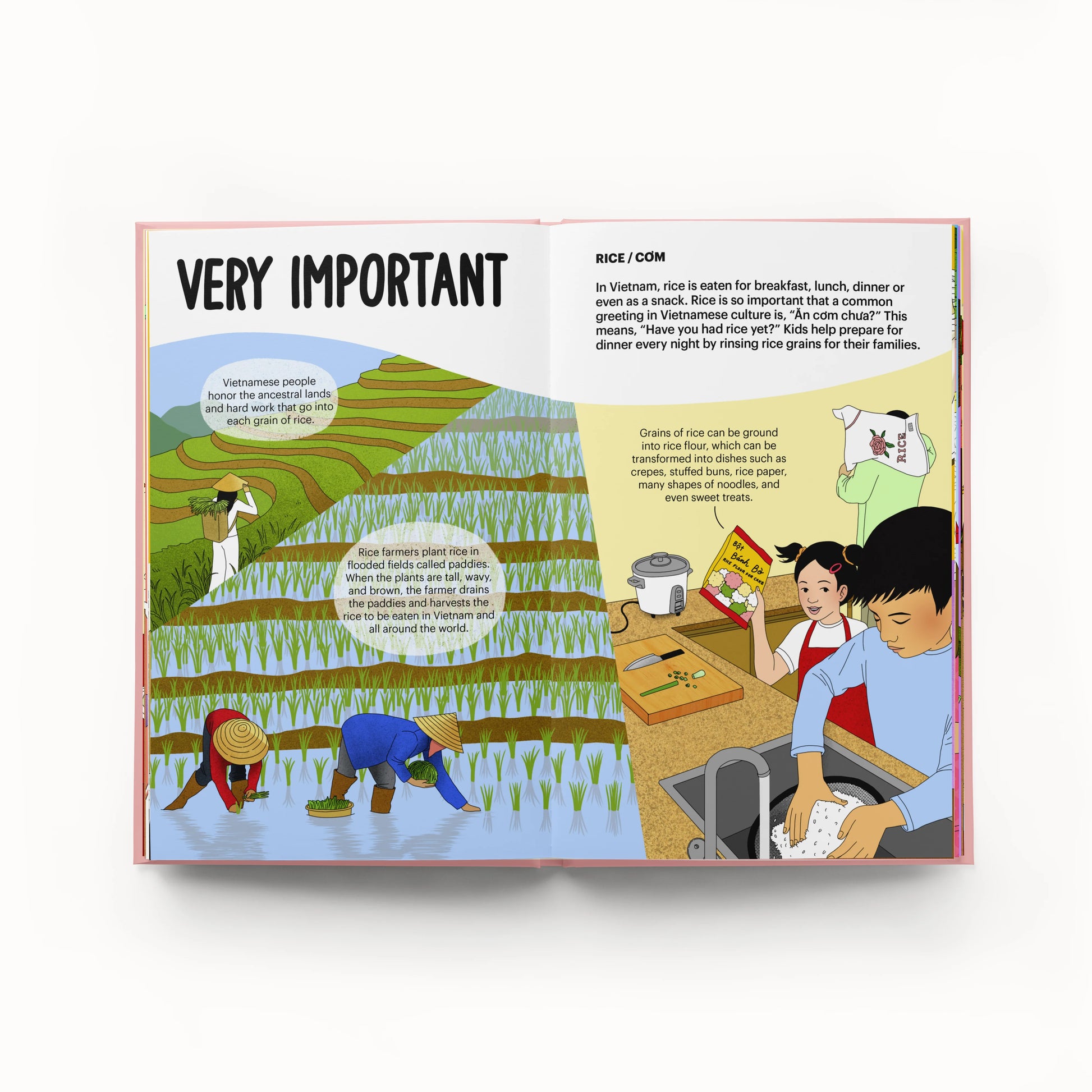 Author, Cat Nguyen, invites you to discover the fresh and bright flavors of Vietnam, where food is not just something you eat but something you share. Illustrated by Kim Thai Nguyen each page is a colorful exploration of a dish that is sure to make every reader hungry.